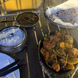 great service! we shared 4 meals; lamb tiki masala, chili garlic shrimp, shrimp tiki masala, veggie paneer and garlic naan. everything was delicious. Our server Raj was great.
